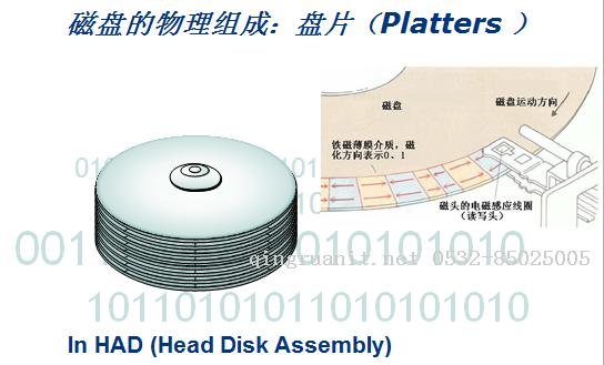 机械硬盘由多块盘片组成,它们都绕着主轴旋转。每块盘片上下方都有读写磁头悬浮在盘片上下方,它们与盘片的距离极小。在每次读写数据时盘片旋转,读写磁头被磁臂控制着不断的移动来读取其中的数据。