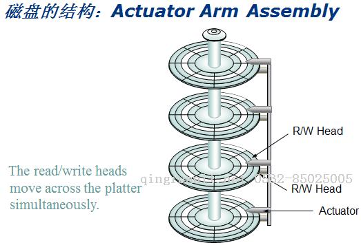 所有的盘片都是同时同步转动,所有的磁头也是同步移动。