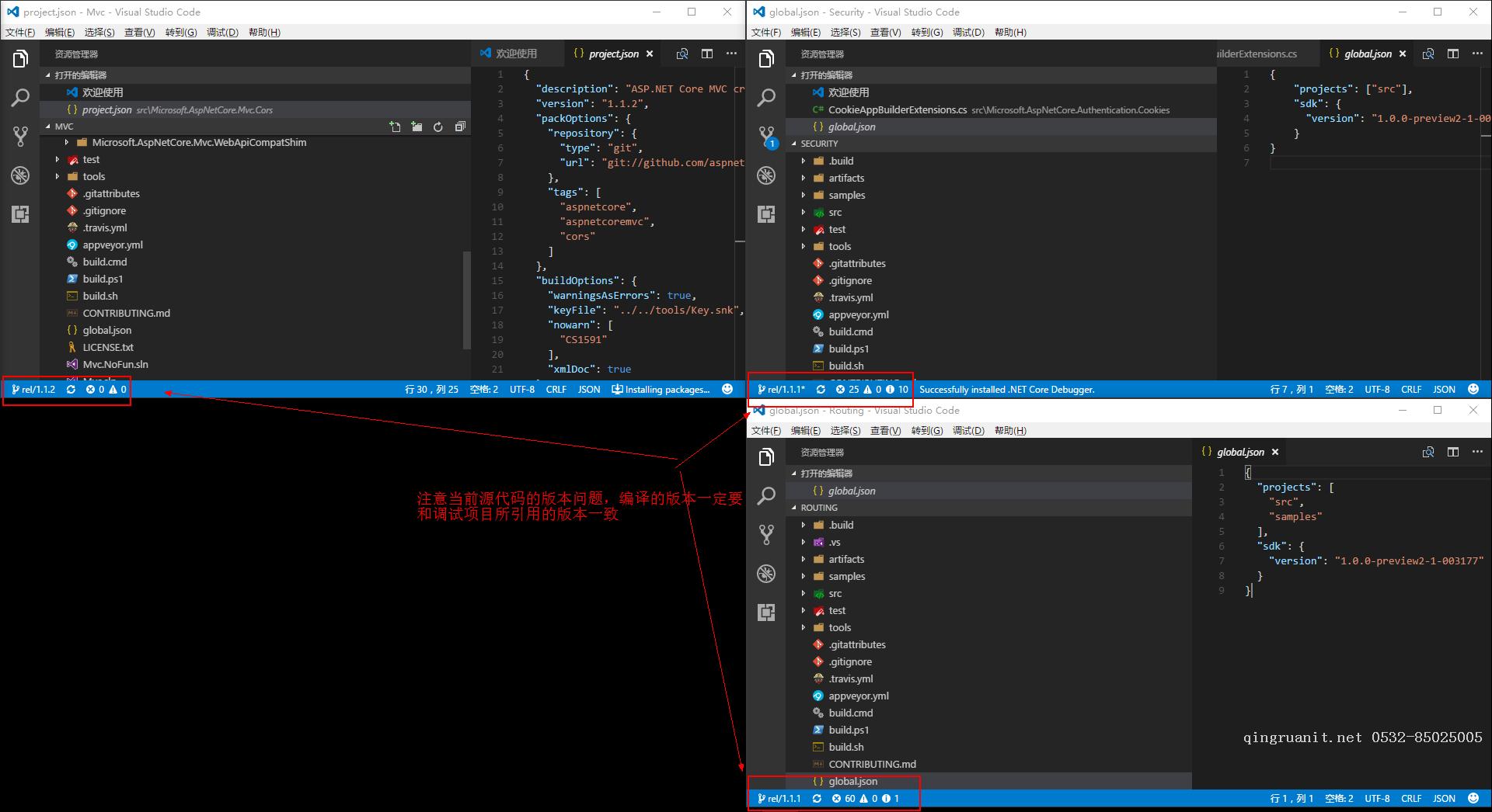 编译之前,一定要根据调试项目所引用的package版本来。我项目引用的mvc版本是1.1.2,routing和security版本是1.1.1 所有git把分支checkout到对应版本上进行编译