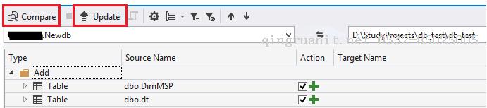 - 左边是源(Source),右边是Target,执行Compare,将Source(DB)和Target(Project)进行比较;