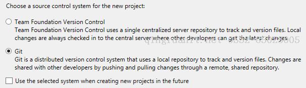 第一个选项是TF 版本控制,第二个选项是Git,选择Git。