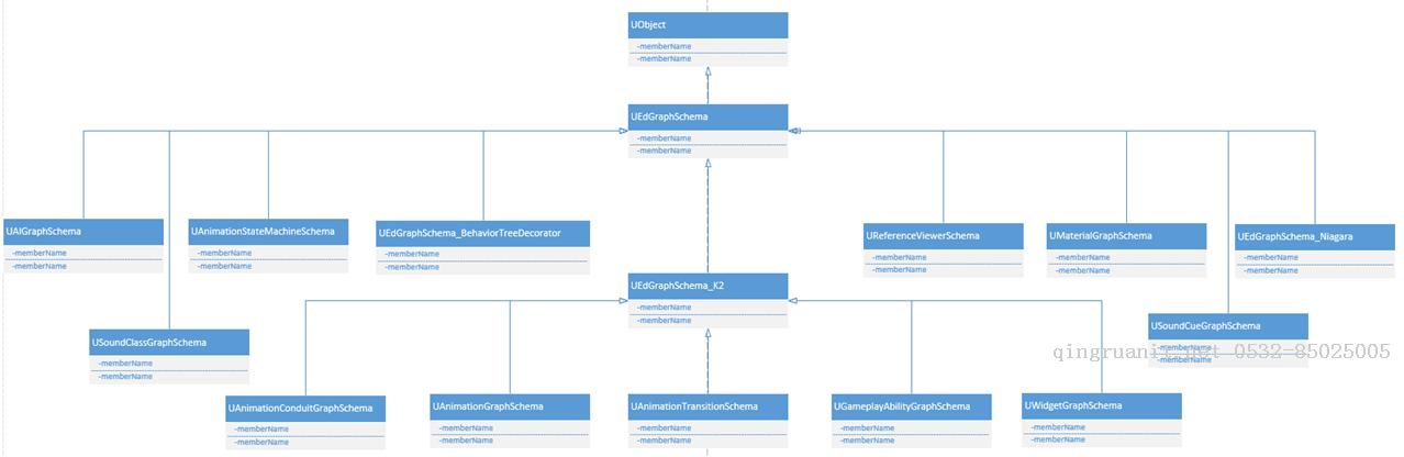用于语法检查(看两个引脚是否可以相连、尝试连接引脚)等功能,如上面所有因为有多种图所以就需要多种模式。蓝图使用的是UEdGraphSchema_K2,动画以及UMG会有自己的Schema。类图如下所示:
