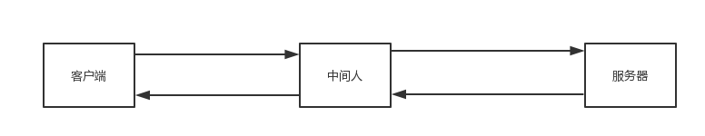 2.服务端收到了要建立https链接的请求后,会发送当时从证书签发机构签发的公钥证书。这个过程中中间人又窃听了,然后中间人替换上自己的证书后又转发给了客户端。