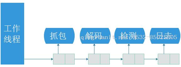 报文检测系统通常四大部分,报文获取、报文解码、报文检测、日志记录;suricata不同的功能安装模块划分,一个模块的输出是另一个模块的输入,suricata通过线程将模块串联起来。