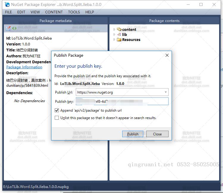 输入网址和key(自己搭建的nuget也可以这么发布)