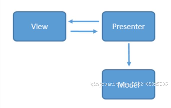 View层只负责与View有关的,操作View层时发出的事件传递给Presenter,Presenter去操作Model,操作完Model,再去通知View相应更新。