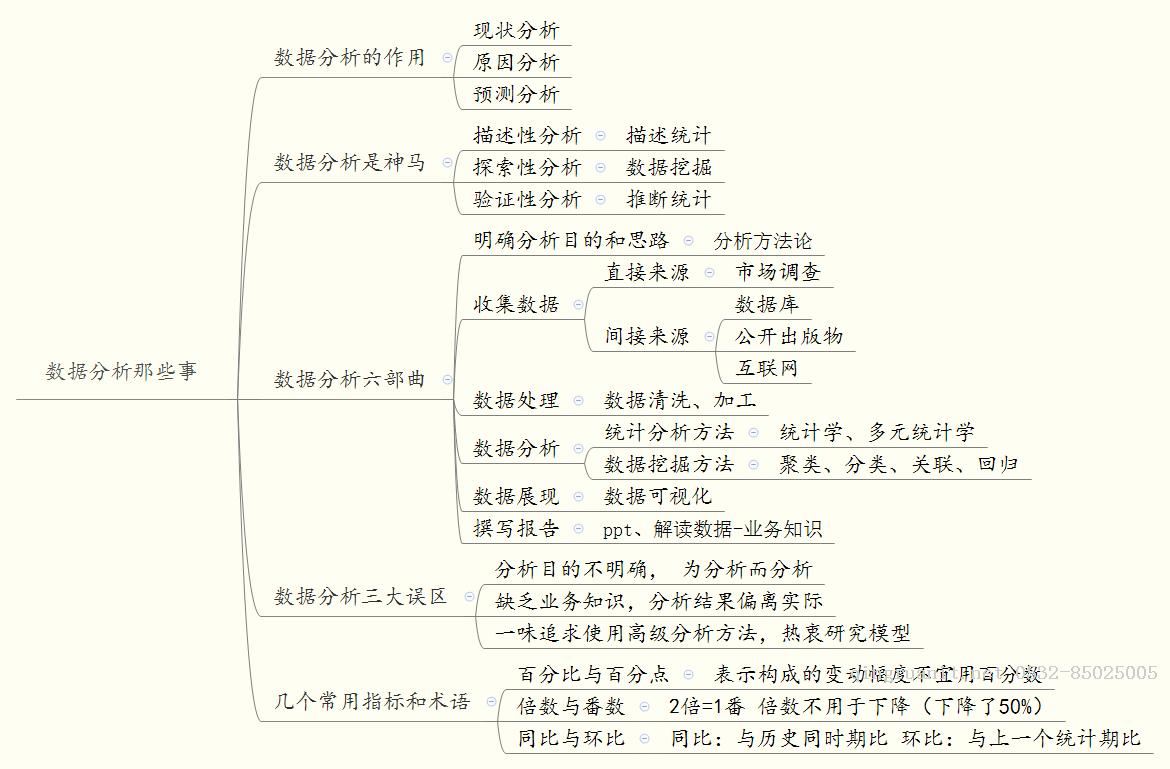 所有的分析都是这六步,明确分析目的和思路-收集数据-数据处理-数据分析-数据展现-撰写报告。技能树也是围绕这六部展开,数据处理方面为数据清洗和加工,数据分析为统计学和数据挖掘,数据展现为数据可视化,撰写报告为PPT,而这些步骤中都可以用excel、python、R等工具,当然最重要的还有业务知识,关系到能否正确解读数据。