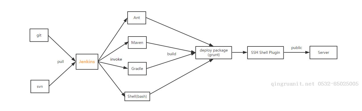 从图片上看,其实Jenkins就是一个将以前人工打包、上传、发布操作通过各种插件等集成到可视化的web页面上一个工具。