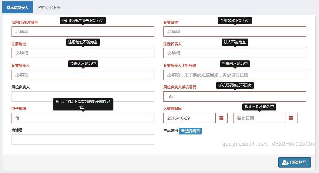 <input class="form-control" data-val="true" data-val-maxlength="字段 EnterpriseNo 必须是最大长度为“30”的字符串或数组类型。" data-val-maxlength-max="30" data-val-required="信用代码/注册号不能为空" id="BasicInfo_EnterpriseNo" name="BasicInfo.EnterpriseNo" placeholder="必填项" value="" data-original-title="" title="" type="text">