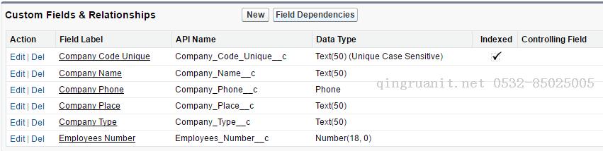 首先先创建一个sObject,起名Company info,此object字段信息如下: