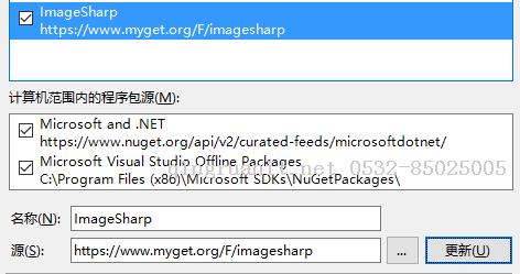 在NuGet 程序包源中加入 ImageSharp 源。
