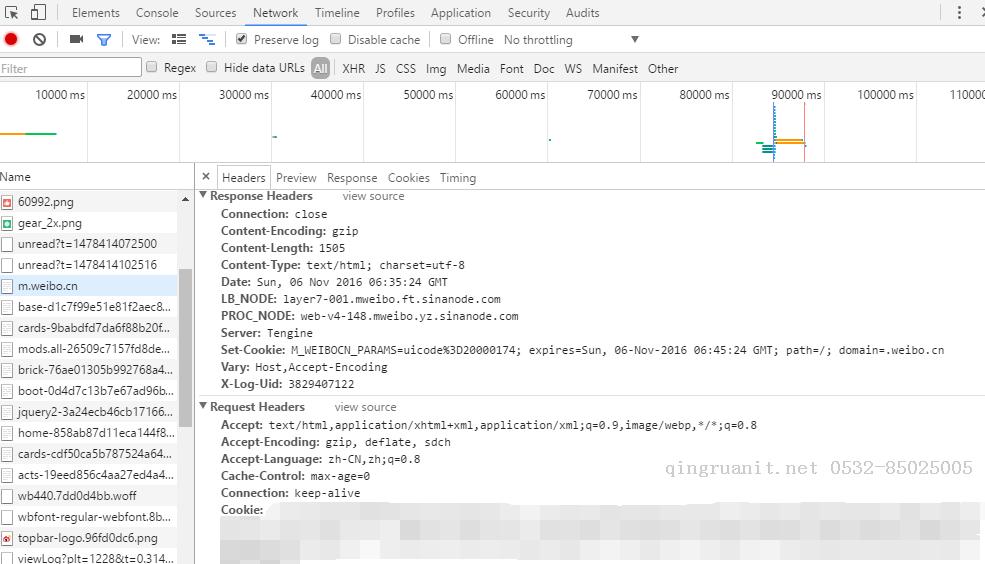 在chrome 中打开微博手机版,F12打开开发者工具,勾选Network的Preserve log项,然后输入账号密码登陆自己的微博。