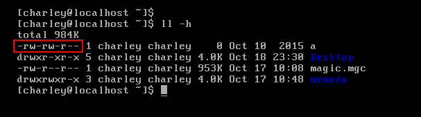 前文提到,Linux 规定一个文件必须要有三种权限:文件所属主权限,文件所属组所在组的权限以及其他用户的权限。通过 ll 命令可以查看目录或者单个文件的权限信息: