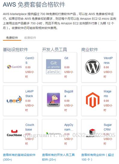 我尝试在Amazon注册了AWS服务,从下面的截图我们可以看出AWS平台给我们提供的服务也是按照IaaS、PaaS、SaaS来进行划分的。使用现有的服务可以实现程序的快速部署,大大节省我们开发软件所需要的时间。