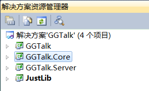 如图,GGTalk中有4个项目,第一个“GGTalk”是客户端项目;“G