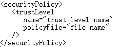 securityPolicy配置节是定义一个安全策略文件与其信任级别名称之间的映射的集合。配置如下所示