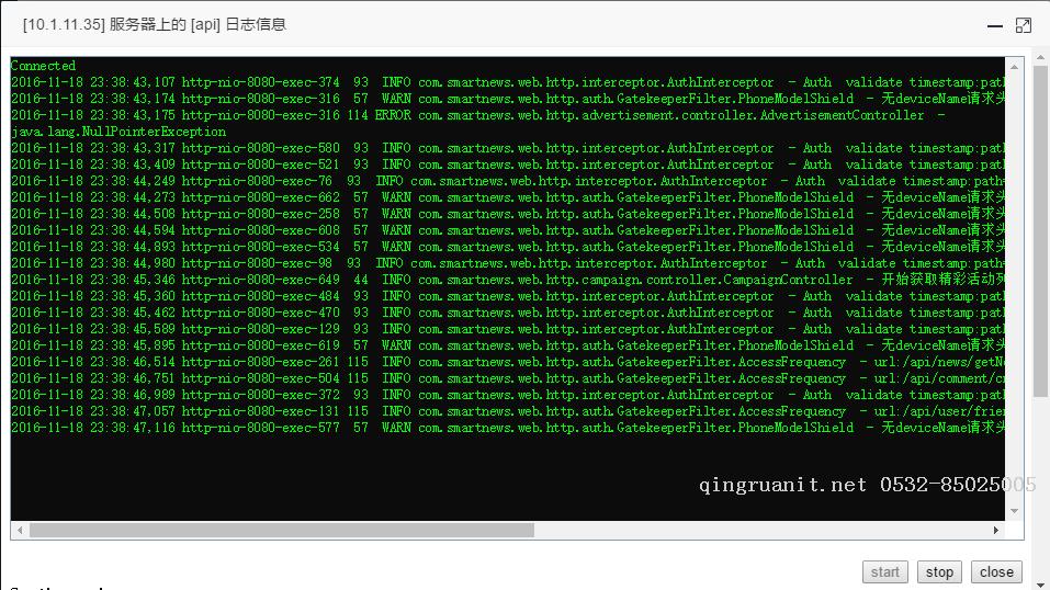 之前做了一个web版的发布系统,但没实现在线看日志,每次发布版本后,都需要登录到服务器上查看日志,非常麻烦,为了偷懒,能在页面点几下按钮完成工作,所以这几天查找了这方面的资料,实现了这个功能,瞬间觉的看日志什么的,太方便了,以后也可以给开发们查日志,再也不用麻烦运维了,废话少说,先看效果吧。