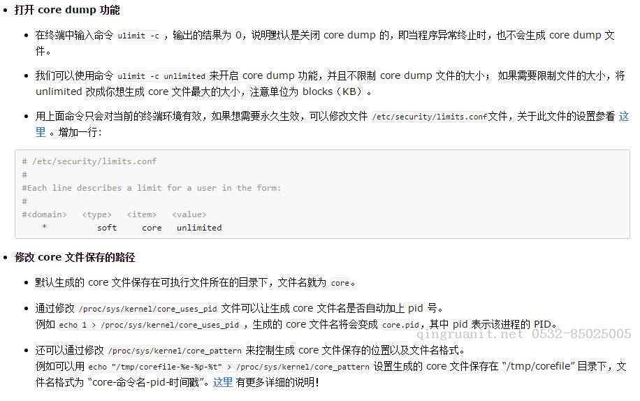 程序中开启core dump,通过如下API可以查看和设置RLIMIT_CORE